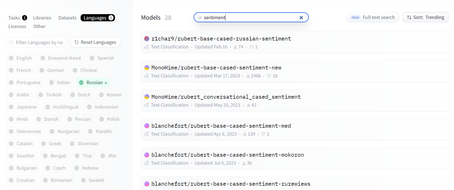 | VADER | Библиотека для анализа сентимента, подходит для социальных сетей и коротких текстов | Бесплатная, быстро работает | Меньше точности по сравнению с обученными моделями |