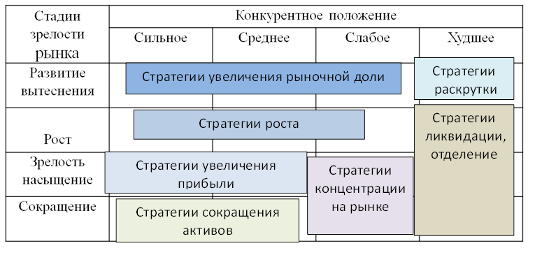 | Постановка целей | Определение стратегических направлений для портфеля в целом и отдельных продуктов. |